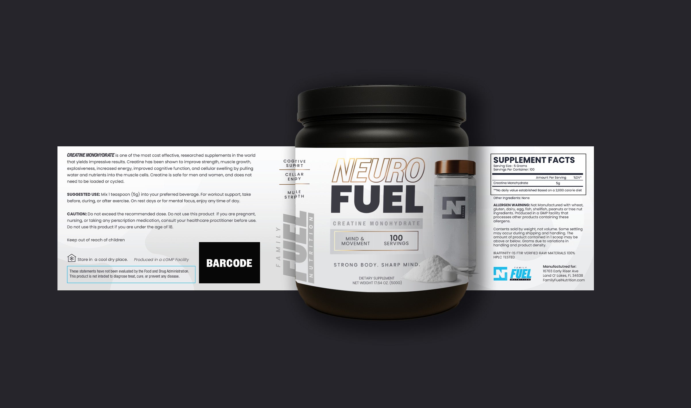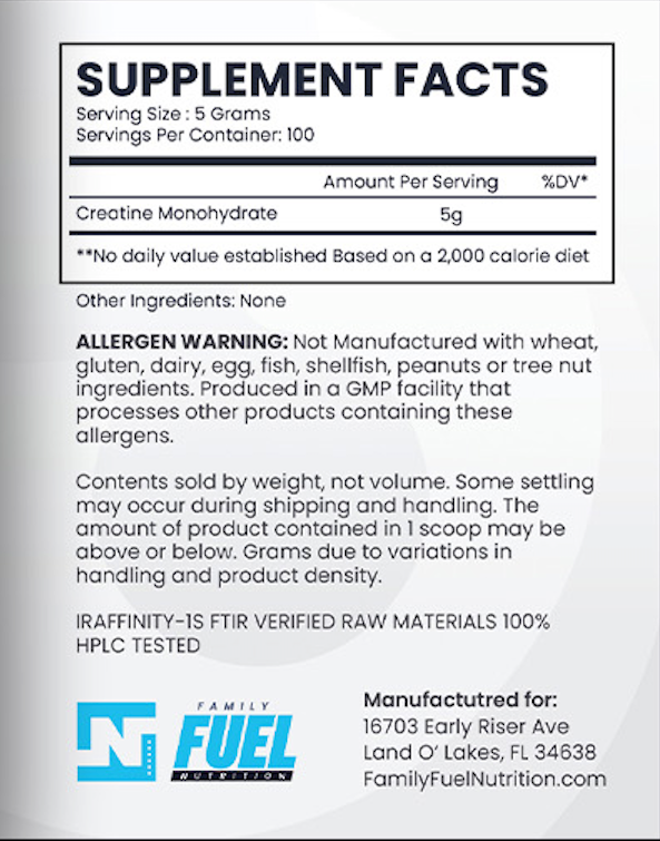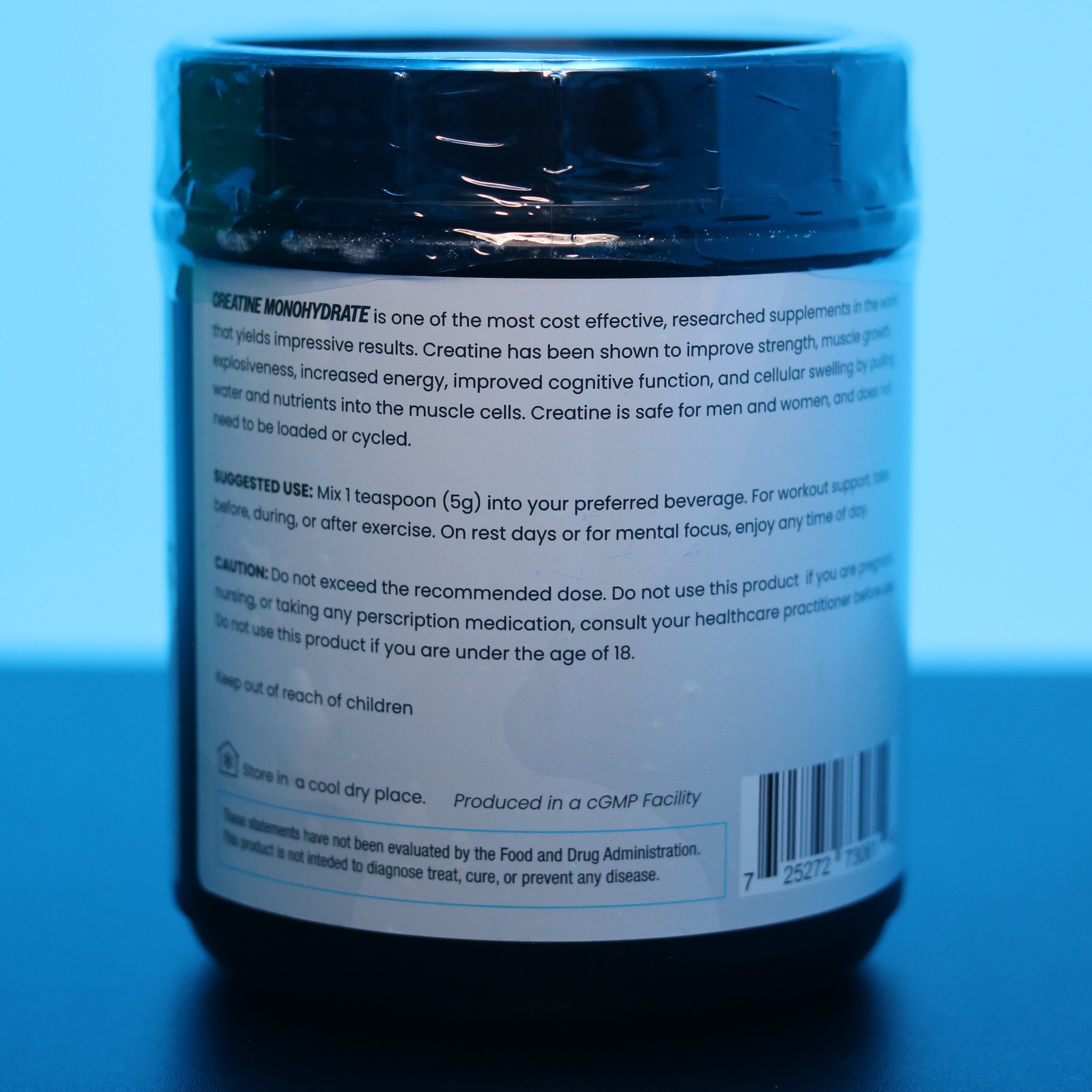 Creatine monohydrate your daily brain and body fuel is one of the most researched supplements in the world.  Creatine monohydrates works by elevating your phosphocreatine to regenerate ATP in muscle and brain cells. It can improve strength, training endurance, cognitive function, side effects of poor sleep, and increase cellular swelling by pulling water and nutrients into the muscle cells. The ISSN deems Creatine is safe for men and women and does not need to be loaded or cycled.*